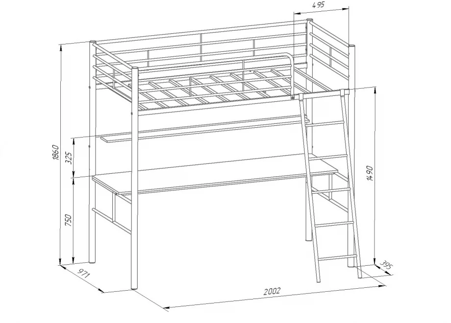 Кровать чердак с рабочей поверхностью и полкой Севилья-1.2