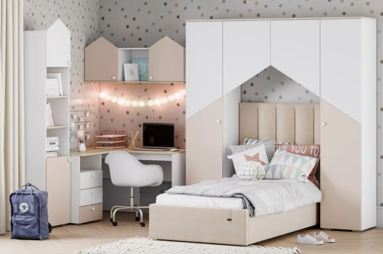 Шкаф для белья НМ 041.43 Банни не займет много места в детской комнате. Компактная, но очень вместительная модель шкафа с пятью полками, позволит разместить вещи и игрушки. Особенности стиля детской «Банни» - это: светлые, спокойные оттенки в единой гамме. Скругленные ручки-кнопки не имеют острых граней. Ящики для хранения белья позволят навести порядок в комнате и расположить вещи. Скандинавская стилистика не любит загромождения мебелью. Только функциональность и практичность. Если правильно спланировать интерьер, в детской будет много места для хранения и пространства для игр. Фасады выполнены из МДФ с покрытием пленкой ПВХ.