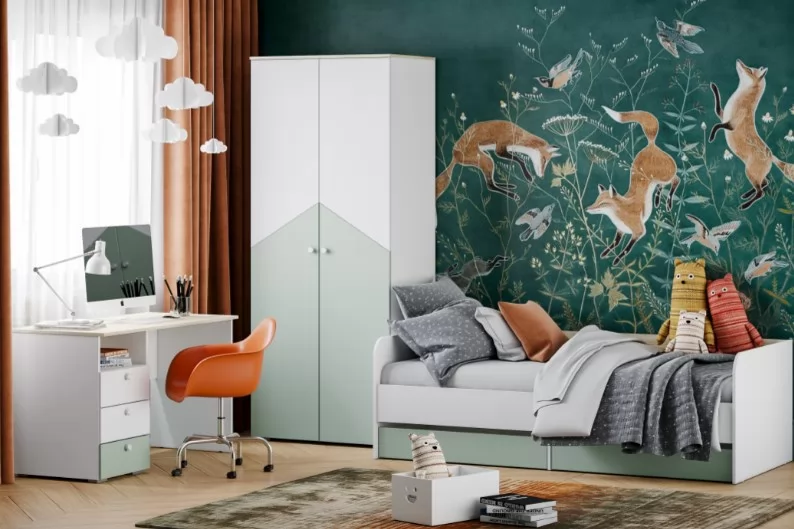 Двухстворчатый шкаф НМ 041.42 Банни поможет организовать хранение вещей в детской. Внутри модуля предусмотрены овальная штанга для одежды на вешалках. Широкие антресольная и нижняя полки подойдут для размещения коробок и аксессуаров. Классические глухие фасады надежно защитят содержимое шкафа от влаги и пыли.