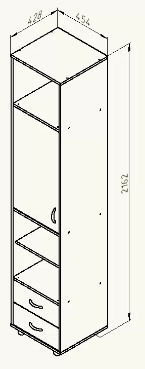 Шкаф станет прекрасным функциональным решением для хранения вещей в детской комнате. Этот предмет мебели включает в себя 6 вместительных полок, в том числе 3 закрытых и 3 открытых полки, а также 2 выдвижных ящика. Таким образом, размещать в вещи в нем очень удобно. Современный и компактный шкаф отлично впишется в любой интерьер. Шкаф можно собрать с открыванием двери как на правую сторону, так и на левую. Шкаф установлен на регулируемых опорах.