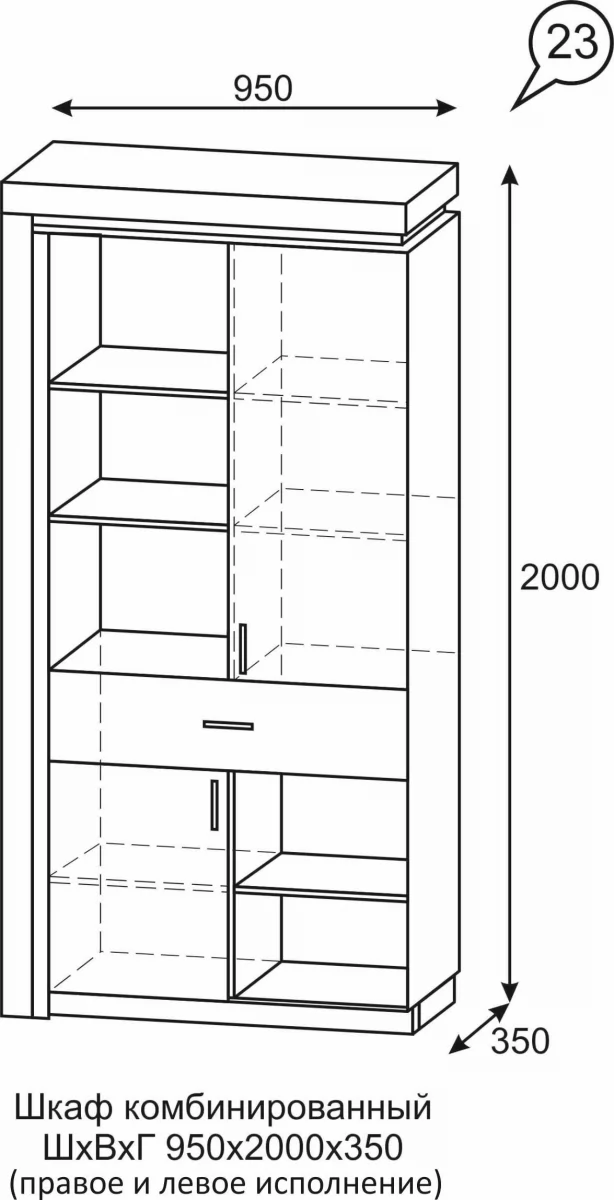 Ширина- 950 мм Высота- 2000 мм Глубина- 350 мм Цвет корпуса- Дуб Сакраменто Цвет фасада- Белый снег Материал корпуса- ЛДСП Материал фасада- МДФ глянец Шариковые направляющие полного выдвижения Модули комплектуются светодиодной подсветкой (дополнительная опция) Ручки металлические цвет – «Сатин светлый» Сборка универсальная