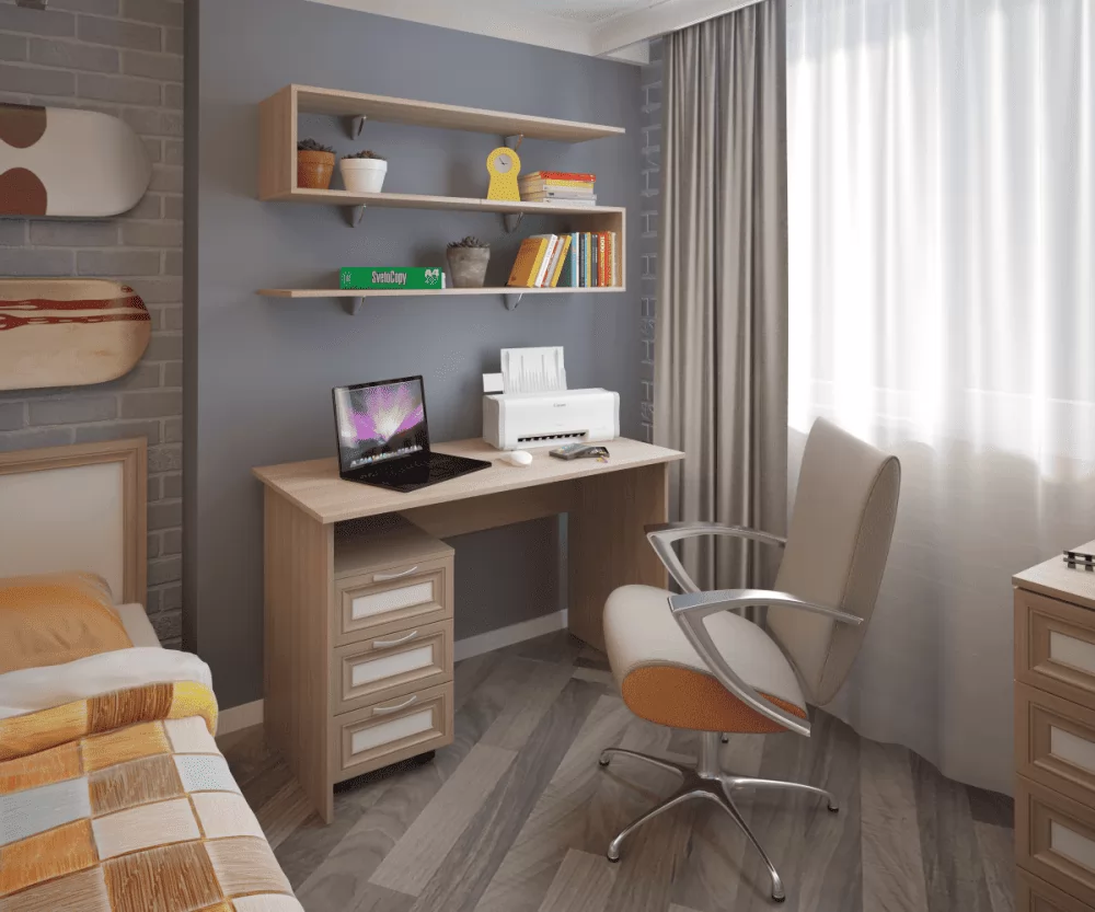 Особенности изделия: Стол, как прямой типовой, может быть дополнен Тумбой на колесных опорах М19 и Полкой М16, т.к. имеет вместе с последней одинаковую ширину, равную 1200 мм. В столешнице присутствуют скрытые технологические отверстия, которые позволяют установить на нее Надстройку стола М14 и получить компактное, но функциональное рабочее место.