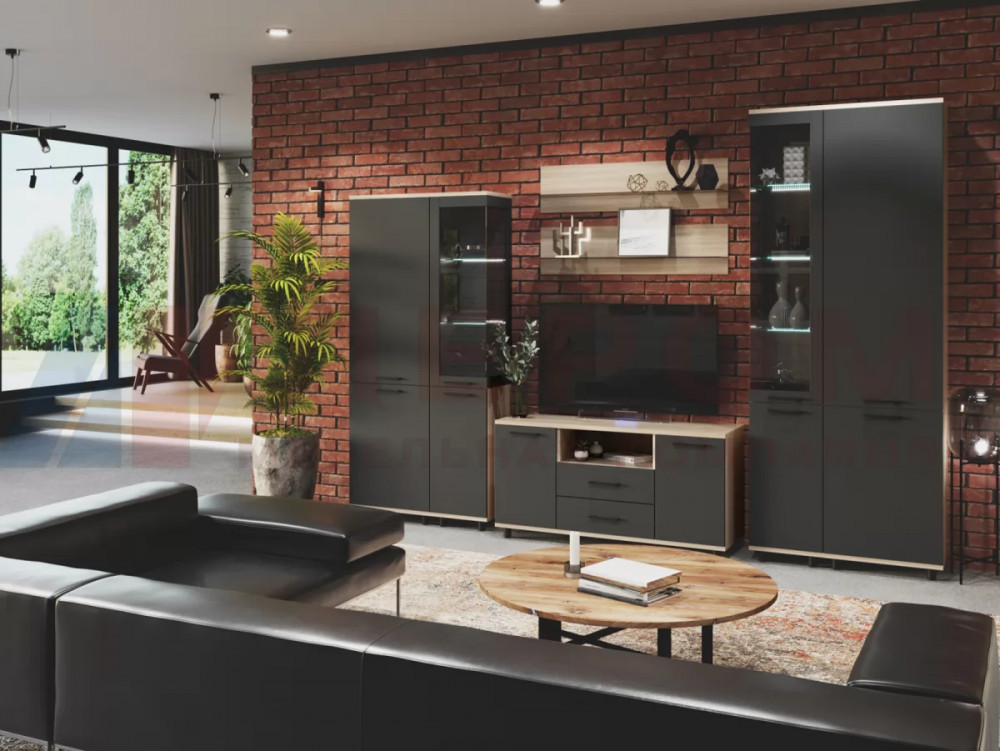 СИДНЕЙ-1 Центральная секция (ш1850*г430*в2000мм), ЛДСП Белый/ЛДСП Ателье светлое