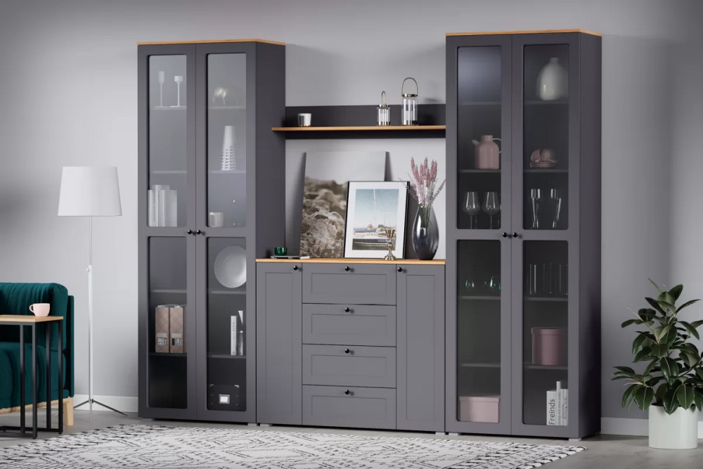 Остин – гостиная в современном классическом стиле. Лаконичность, строгие линии, контрастная фурнитура, функциональность и элегантность – отличительные черты этой коллекции.