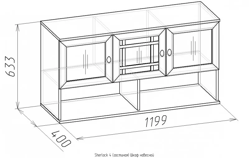 Ширина (мм): 1199 Высота (мм): 633 Глубина (мм): 400 Материал: ЛДСП/Стекло Цвет: Ясень анкор светлый, Дуб сонома, Орех шоколадный Коллекция: Sherlock