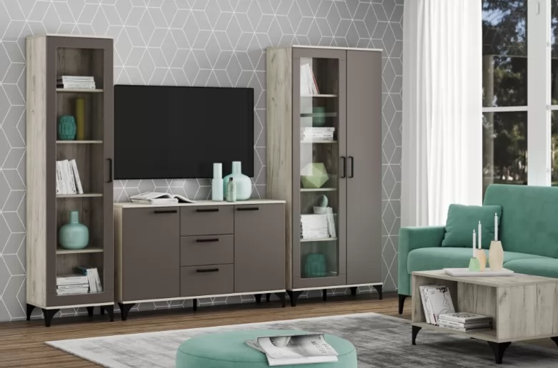 "МАРСЕЛЬ" - оригинальная коллекция мебели, которая сделает ваш интерьер современным и стильным. Благодаря высоким ножкам и длинным ручкам он привнесет в комнату нотку ретро-атмосферы. Теплый оттенок дерева сделает комнату более уютной. Витрина является элементом коллекции, характеризующейся гармоничным сочетанием эффекта дерева с темными и светлыми фасадамии. Мебель из коллекции может быть оформлена в современном стиле, с элементами индустриального и ретро стиля. Это идеальная коллекция для любителей нетривиальных решений в интерьере, она не перегружает, но станет отличным дополнением к оформлению помещения. Шкаф комбинированный "Марсель" предназначен для хранения или демонстрации различных вещей и предметов. Изделия универсальной сборки: может быть собрано широким отделением (фасадом-витриной) как на левую, так и направую стороны.