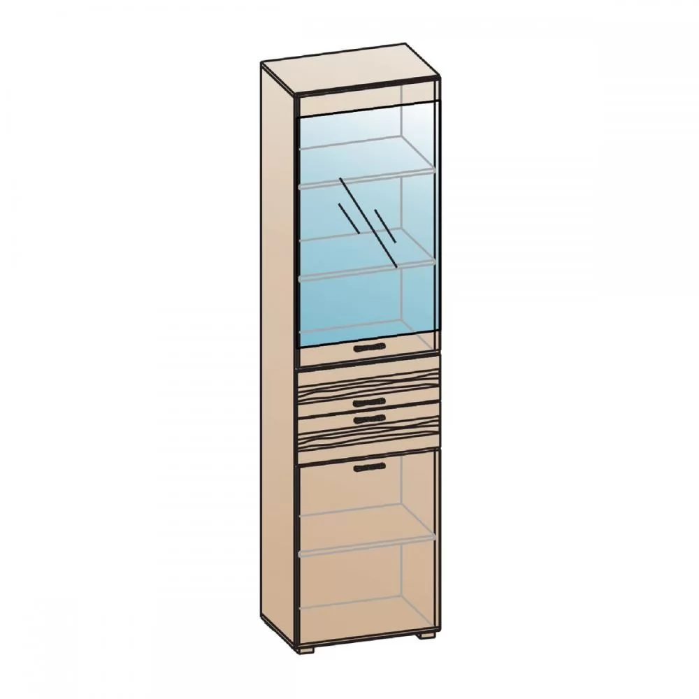 Шкафы, несмотря на небольшую глубину, вместительны. Фасадная часть - фрезерованная плита МДФ в пленке ПВХ. В серии используется ручка-скоба 96 мм (сатин светлый). Корпус - ЛДСП 16 мм. Шкафы комплектуются регулируемыми опорами L-20. Выдвижные ящики снабжены шариковыми направляющими полного выдвижения.