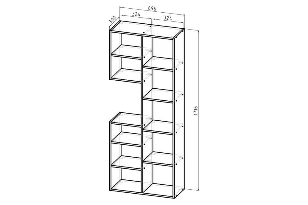 Ширина, мм-698 Глубина, мм-294 Высота, мм-1716 Материал-ЛДСП Кромка: ПВХ 0,4/ 2 мм (цвет кромки в тон мебели) Цвет короба-дуб сонома Гарантия-24 месяца