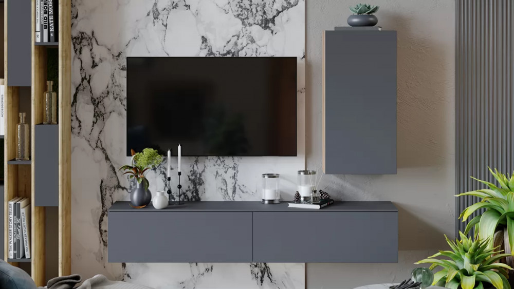Гостиная «Порто» №5 Яблоня Беллуно, Графит софт в Пыть-Яхе