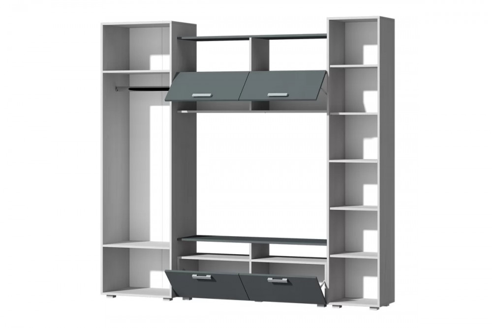 В данной гостиной есть отдел для одежды на плечиках и отдел с полками.