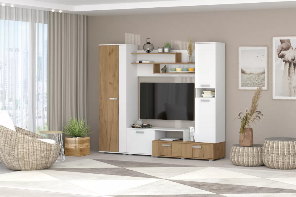 Гостинная Юна Белый Текстурный/Дуб Крафт Золотой в Пыть-Яхе