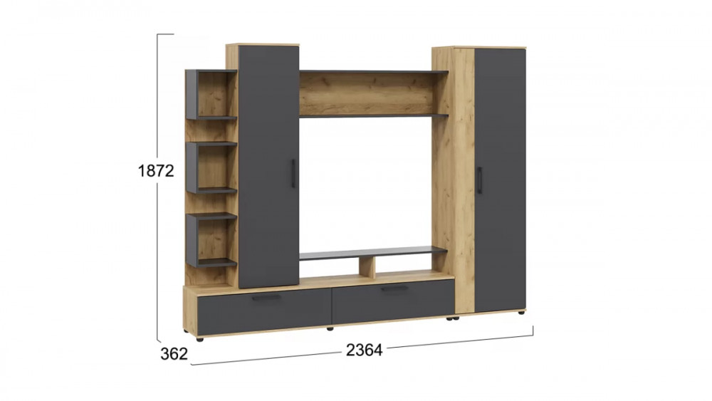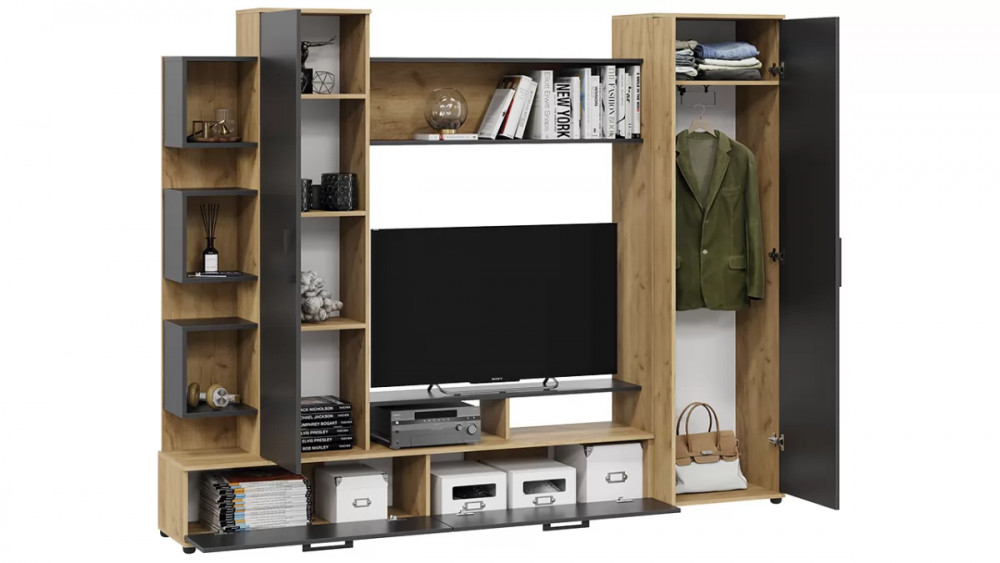 Стенка «Дакота» Дуб Крафт золотой, Антрацит в Пыть-Яхе