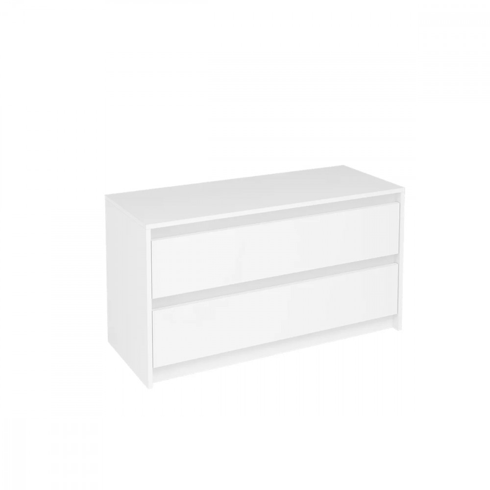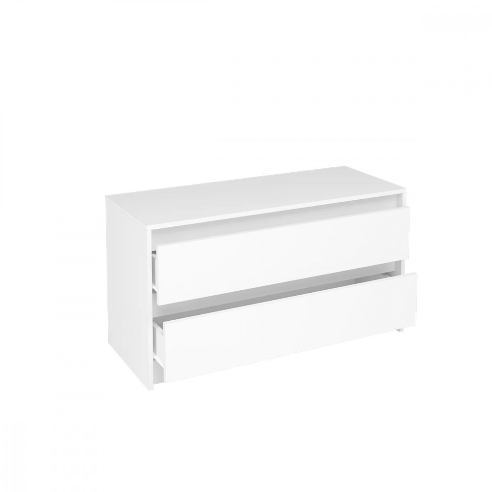 Лицевая фурнитура на тумбе отсутствует. Ящики открываются с помощью захвата рукой.