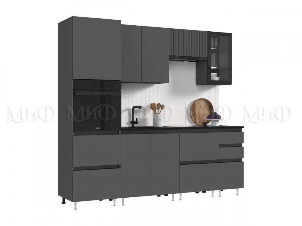Кухня Техно-6 2,4м (Графит/Графит софт) в Пыть-Яхе