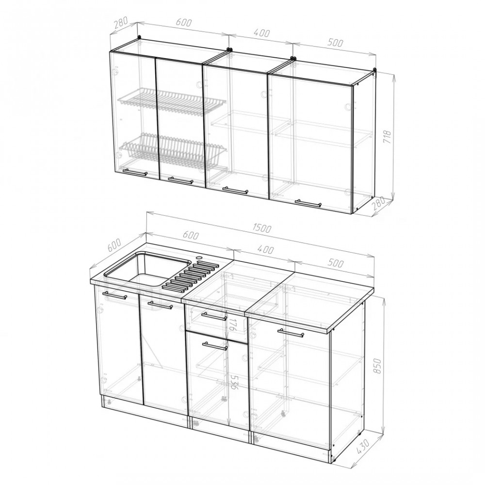 Ширина, мм-1500 Глубина, мм-600 Высота столов, мм-850 Высота шкафов, мм-720 Материал-ЛДСП Цвет короба-Белый Цвет верхних фасадов-Пайн белый Цвет нижних фасадов-Пайн экзотик Цвет столешницы-Сахара Ручка-Рейлинг Количество упаковок, шт.-7 Гарантия-24 месяца