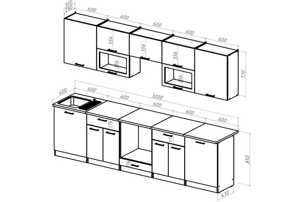 | Размеры (Ш*Г*В): | 3000х600х850/720 мм |