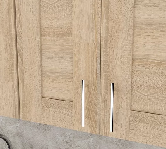 Кухонный гарнитур Ника мини 1 из ЛДСП в модном цвете "Квадро дуб сонома" впишется в современный дизайн интерьера. Подойдет как для частного дома, так и для небольшой квартиры. Напольные и подвесные шкафы позволят разместить всю кухонную утварь. Гарнитур состоит из набора шкафов, которые органично комбинируются между собой. Ящики, полки, навесные шкафы, тумбы и пеналы можно менять местами, создавая практичное рабочее пространство.