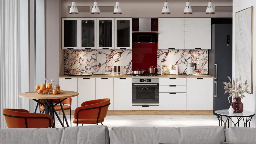 Назначение: Мебель для хранения Гарантийный срок: 24 месяца Материал кромки каркаса: ПВХ Стиль: Современный Габаритная длина: 3 400 Тип: Кухонный гарнитур Расположение: Напольный, навесной Тип направляющих ящиков: Шариковые Материал ножек/опоры: Пластик Материал каркаса: ЛДСП Столешница в комплекте: Нет Материал ручек: Пластик Производство: Россия Габаритная высота: 2 132 Форма предмета: Прямоугольный Модель: Гренада Срок службы: 5 лет Материал фасада: МДФ, пленка ПВХ Оттенок: Коричневый, Белый Цвет: Дуб Крафт золотой, Холст Белый Цвет каркаса: Дуб Крафт золотой Цвет фасада: Холст Белый Оттенок каркаса: Коричневый Оттенок фасада: Белый Наличие механизма раскладки: Нет Наличие спального места: Нет