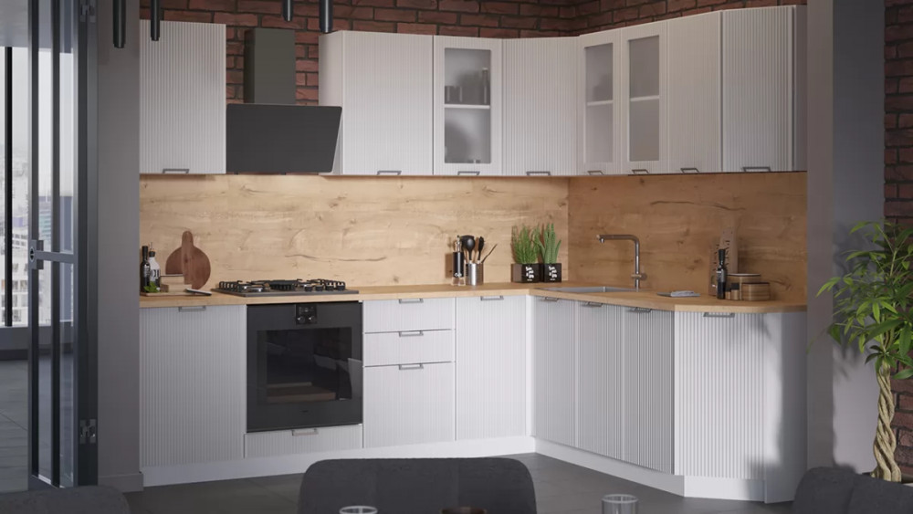 Модульная кухня «Кимберли» Дуб Крафт золотой, Сноу, Муссон