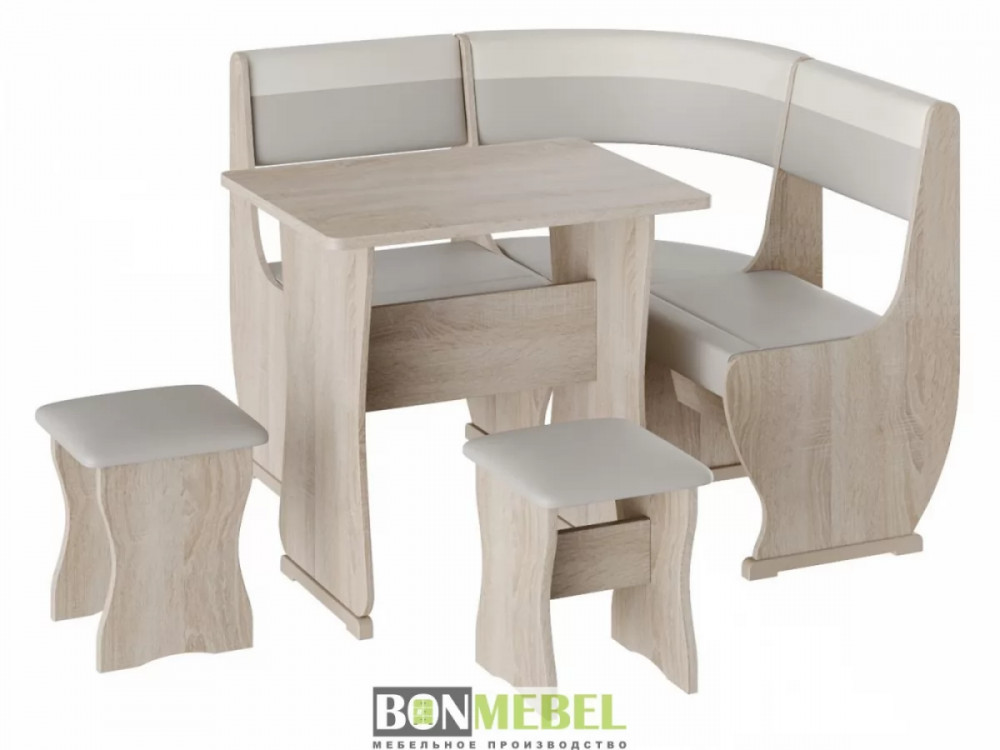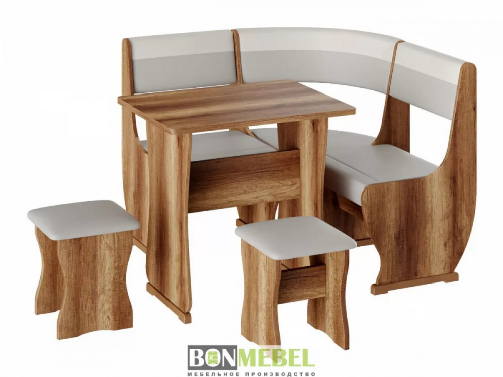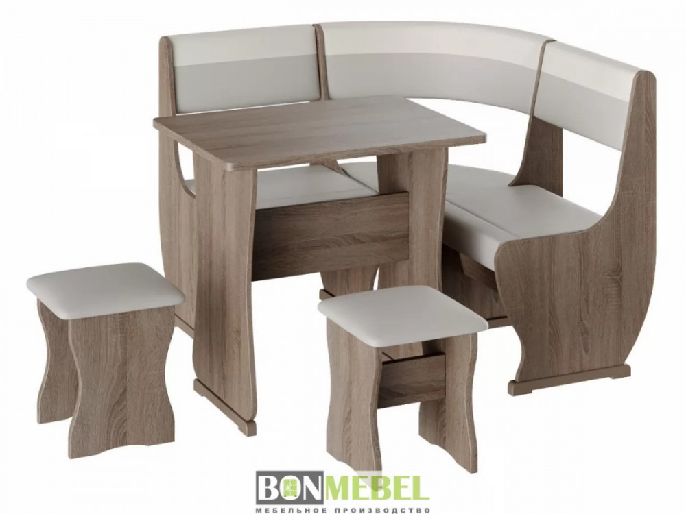 Кухонный уголок Уют 1 мини — сочетание практичности и современного стиля исполнения. Композиция поможет выгодно оформить обеденную зону, рассчитанную на четыре персоны. Преимущества: универсальная сборка — вы сможете выбрать ориентацию угла скамьи при сборке; обивка из экокожи — данный материал устойчив к различным загрязнениям и не требует обработки специальными средствами; ящик для хранения — под сиденьями расположены вместительные ниши для хранения различной кухонной утвари и других нужных вещей.