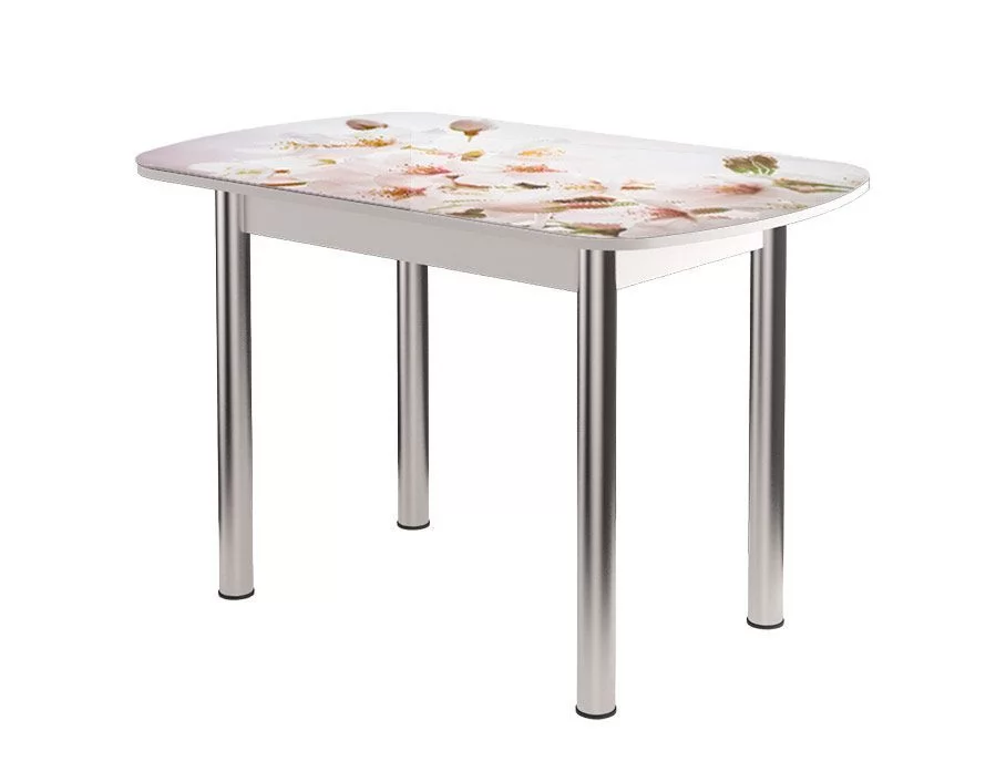 Стол круглый Бостон раздвижной, фотопечать Флоренс/белый/хром брифинг