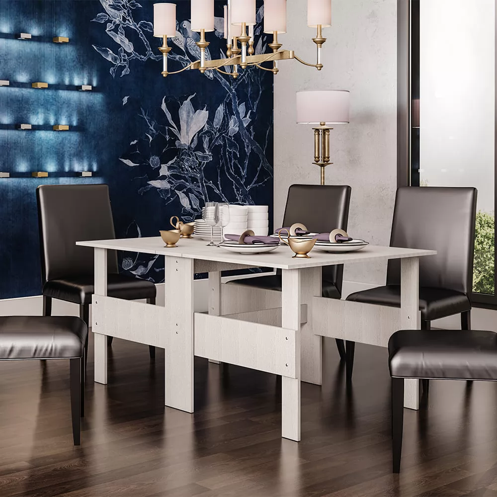 - при необходимости столешница компактной модели раскладывается на две стороны и превращается в полноценный обеденный стол, за которым поместится немало гостей, - изделие выполнено из высококачественной ЛДСП в цвете дуб аталанта и прекрасно впишется в светлый интерьер любого стиля.