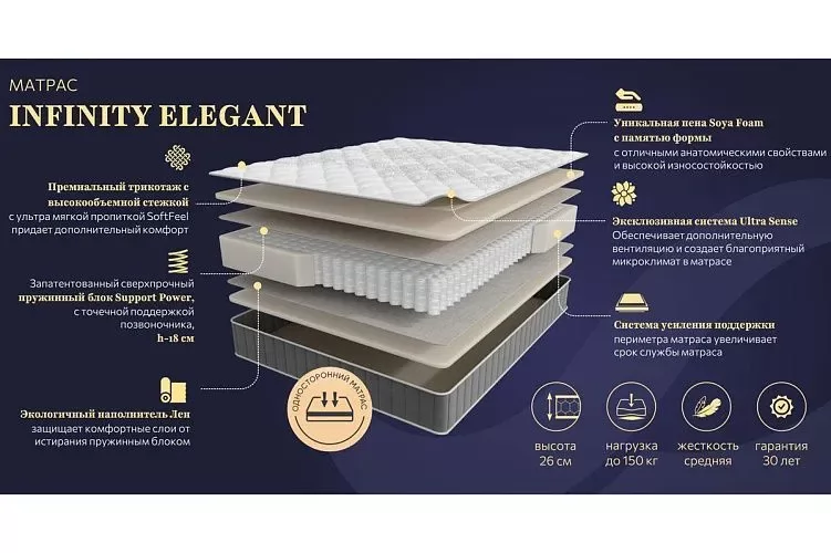 Матрас INFINITY ELEGANT 900*2000мм (Пена/лен, ср.жесткий, h 26см) в Пыть-Яхе