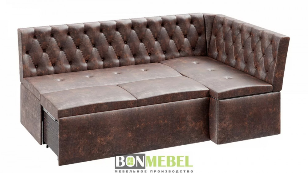 Угловая скамья Квадро тип1 Классик придется по вкусу как поклонникам минимализма так и ценителям роскоши. Спинки изделия декорированы каретной стяжкой и инкрустированы пуговицами, привлекая внимание оригинальным дизайном. Кроме того, уголок оборудован спальным местом, а наличие вместительных ниш для хранения под сидениями придают изделию функциональность.