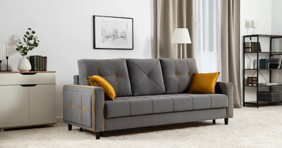 Модные диваны Черри Н порадуют поклонников современного стиля. Контрастные канты, пуговицы и декоративные подушки делают этот диван ярким акцентом интерьера.