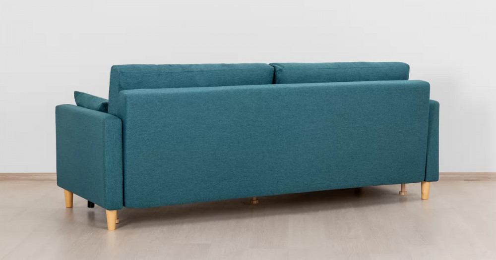 Дилан Диван-кровать арт. ТД 422Габаритысложенный (Д x Г х В, мм): 2170 x 960 x 880разложенный (Д x Г х В, мм): 2170 x 1370 x 620спальное место (Д x Ш, мм): 1910 x 1370высота посадки (мм): 460глубина сиденья (мм): 570высота спинки (мм): 420высота подлкотника от сиденья (мм): 160максимально допустимая нагрузка: 80 кг на одно посадочное место, 100 кг на одно спальное местоМеханизм трансформацииЕврокнижка с механизмом раскладки «тик-так»Бельевой ящикестьс перегородкой по центру (2 отделения)размер отделения (Д x Ш, мм): 786 x 688 x 120Материалыосновная ткань: Лаунж (шенилл) / Сага (рогожка)выполняется в тканях: Сага океан (темно-зеленый)каркас: фанера деревянный брус ДСП ДВП ЛДСП ДВПооснование матраса: ППУ на блоке плоских пружин «змейка»приспинные подушки, шт: 2декоративные подушки, шт: 2наполнитель подушек: полиэфирное волокно «шарики»материал опор: лакированное деревоцвет опор: бежевыйНазначениев гостиную в гостевую комнату в кабинетТребуется ли сборкадаУпаковкаколичество коробок, шт: 1общий вес с упаковкой, кг: 80Гарантия: 18 месяцев