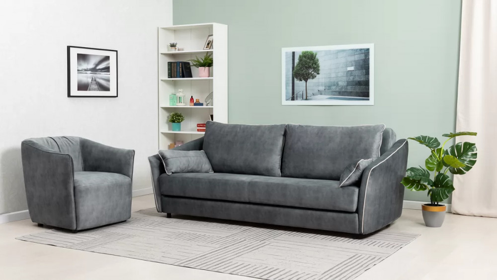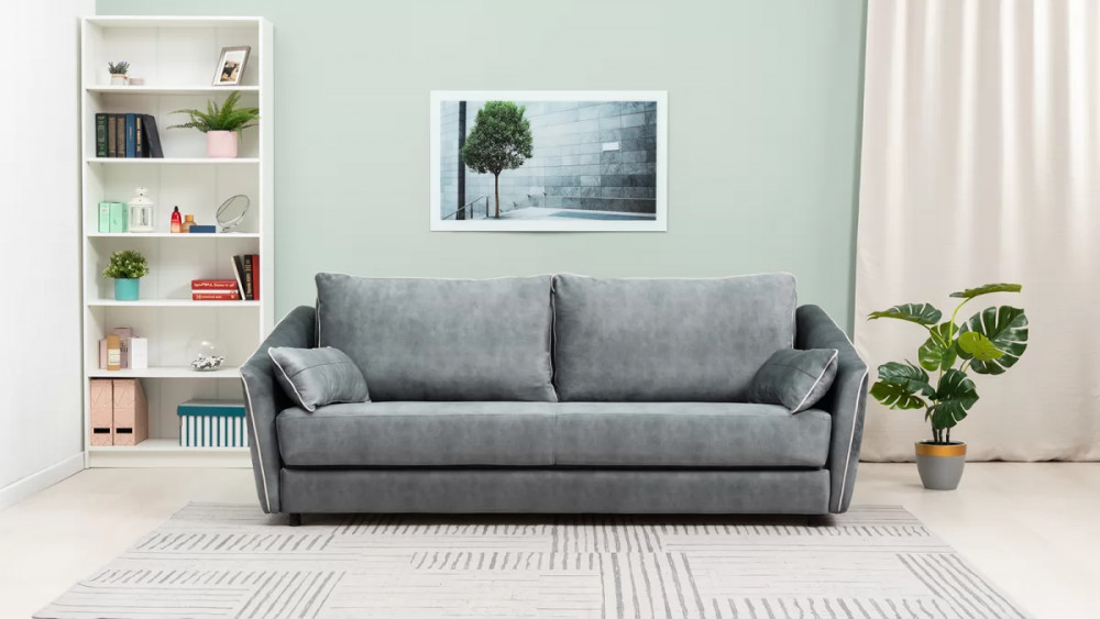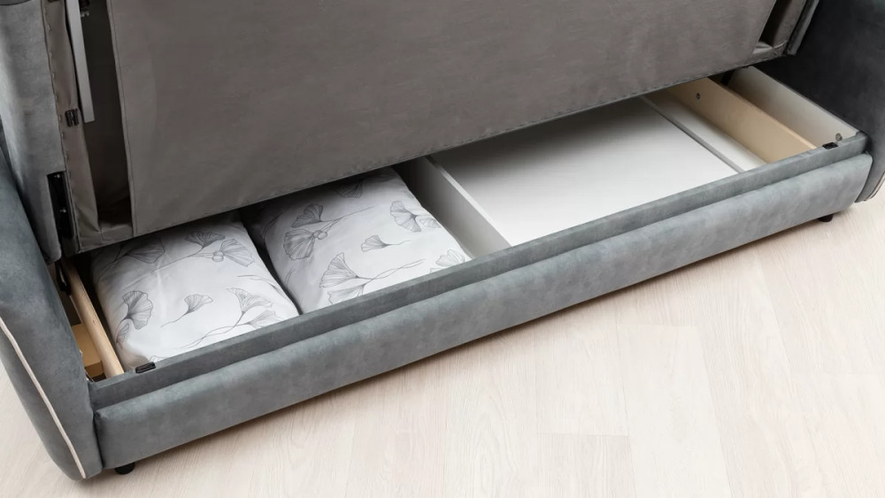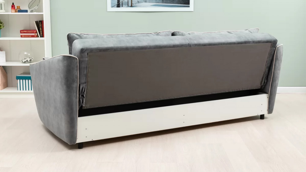 Габаритысложенный (Д x Г х В, мм): -2260 x 1090 x 920разложенный (Д x Г х В, мм): -2260 x 1340 x 750спальное место (Д x Ш, мм): -1980 x 1340высота посадки (мм): -445глубина сиденья (мм): -600высота спинки (мм): -560высота подлокотника от сиденья (мм): -150-300максимально допустимая нагрузка: -240 кг на диванМеханизм трансформации-Книжка с 0 стенойБельевой ящик-есть с перегородкой по центру (2 отделения)размер отделения (Д x Ш, мм): - 890 x 840 x 140Материалыосновная ткань: Greta (велюр)выполняется в тканях: Greta Grafit (серый)/Greta Bone (слоновая кость)каркас: фанера-деревянный брус ДСП ДВПприспинные подушки, шт: -2съемные чехлы приспинных подушек: -естьдекоративные подушки, шт: -2наполнитель подушек: -крошка ППУ и полиэфирное волокно «шарики»цвет опор: -Опора регулируемая, круглая, чернаявысота опор (мм): -60Декор-Подлокотники с выраженным контрастным кантом по внешнему контуру изделия. Декоративные подушки оформлены декоративной отстрочкой «зигзаг».