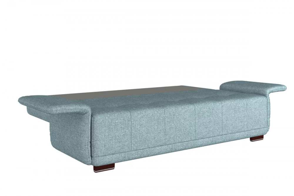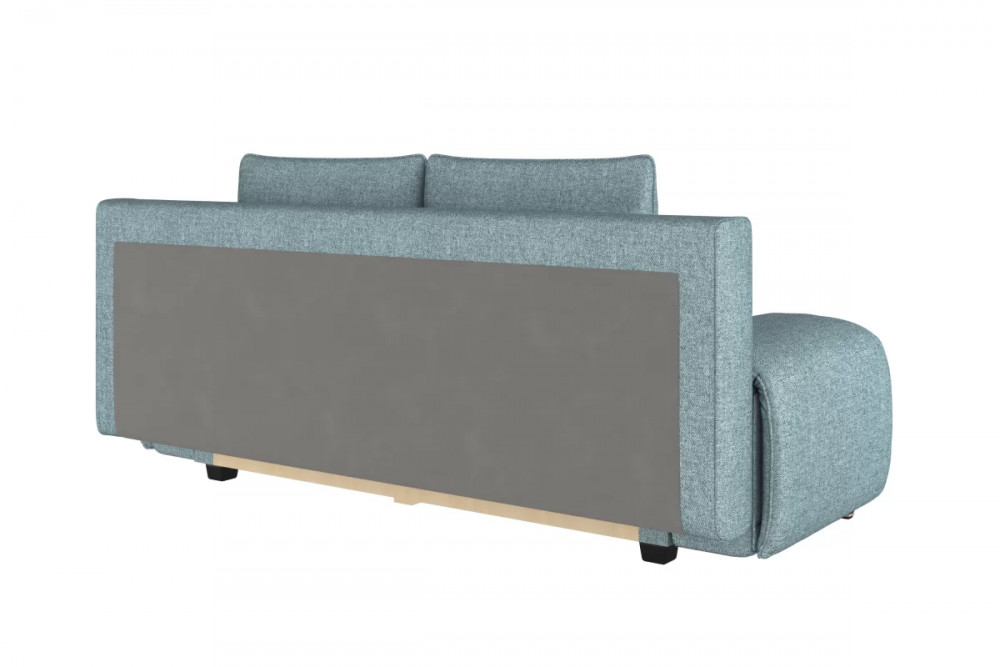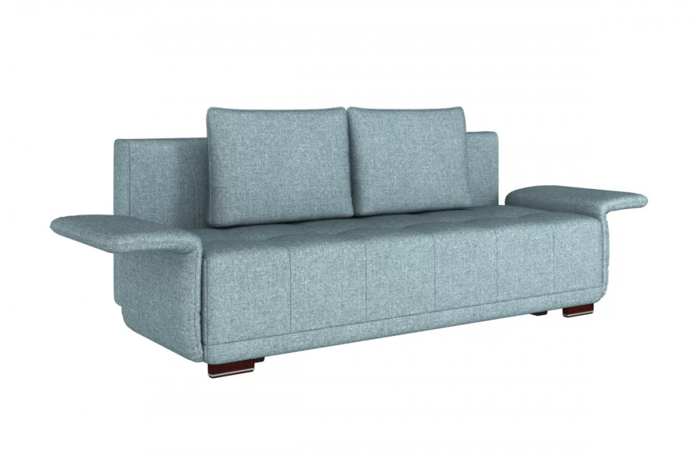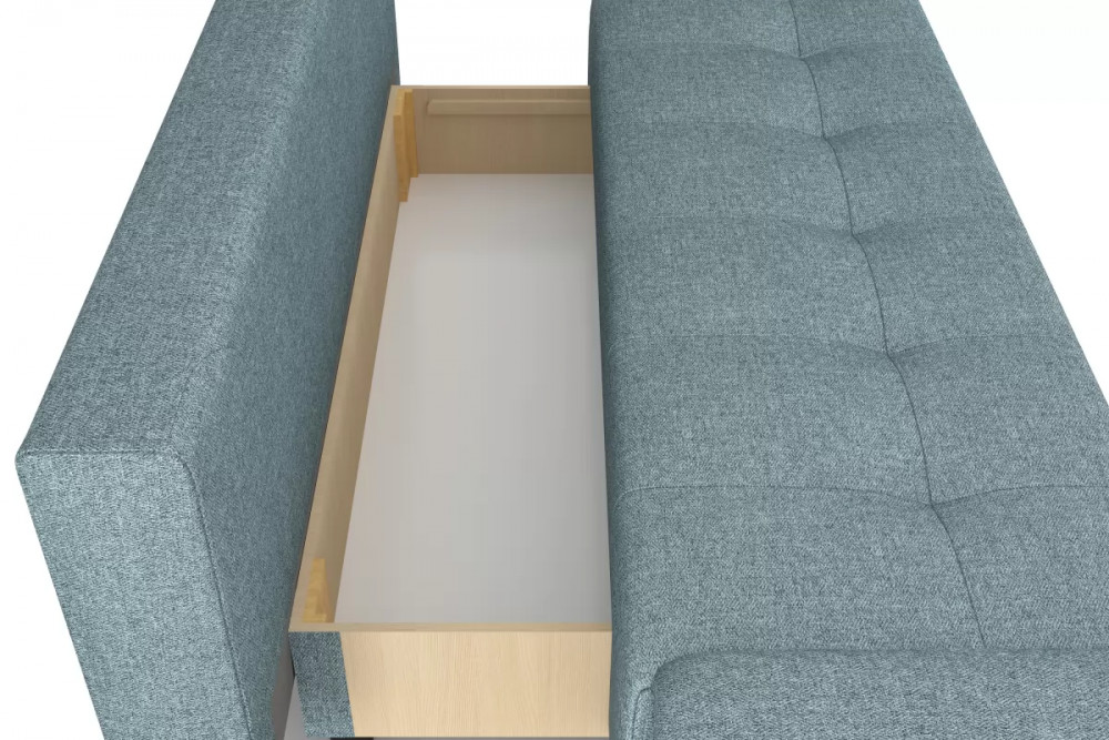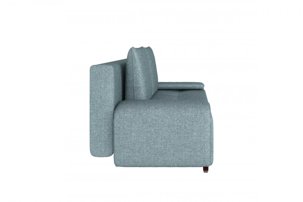 Оригинальный подлокотник с механизмом трансформации уменьшают габариты дивана в сложенном ввиде и организуют рабочцю поверхность в сложенном ввиде.