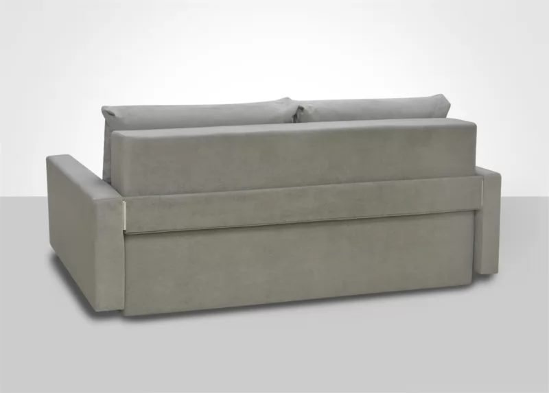 Классический минимализм. Узкий подлокотник, комфортные подушки со съемными чехлами, широкое спальное место.