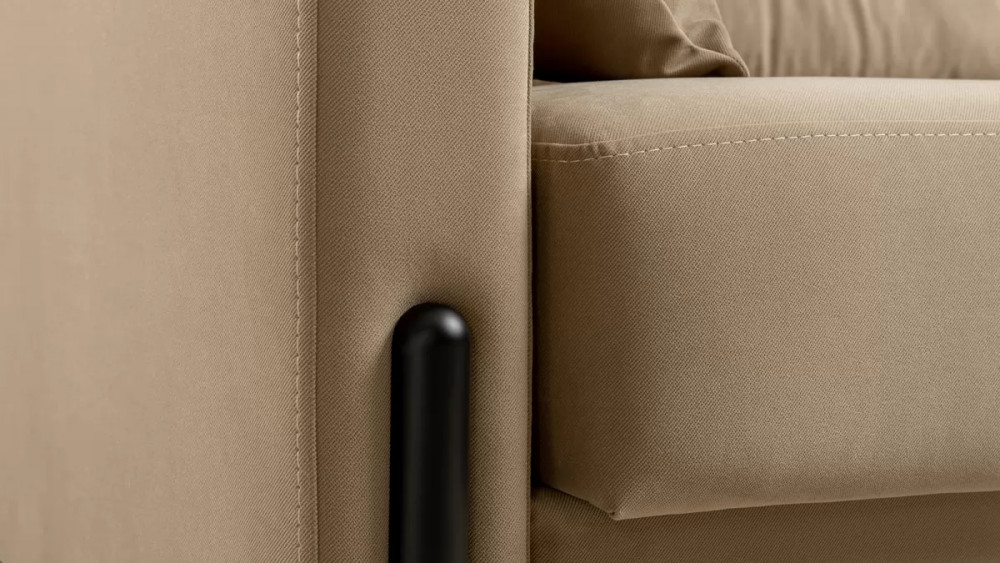 • Металлические опоры плавно переходят в декоративный элемент подлокотника. Декоративная утяжка по приспинным подушкам