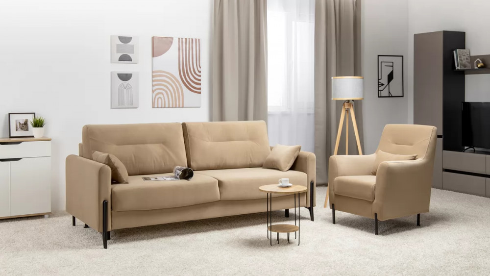 Барселона — современный диван, стиль которого удачно подчеркнут элегантными металлическими опорами. Диван выглядит привлекательно со всех сторон.