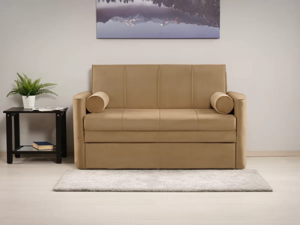 Габаритысложенный (Д x Г х В, мм): 1450 x 800 x 840разложенный (Д x Г х В, мм): 1450 x 2000 x 770спальное место (Д x Ш, мм): 1950 x 1200высота посадки (мм): 460глубина сиденья (мм): 650высота спинки (мм): 450высота подлокотника от сиденья (мм): 120максимально допустимая нагрузка: 80 кгМеханизм трансформацииВыкатной с гнутоклееными латамиБельевой ящикестьодно отделениеразмер отделения (Д x Ш, мм): 1100 x 628 x 100Варианты исполнения6 артикуловсочетание тканей только как на фотоМатериалыосновная ткань: Киви (велюр) / Макс (велюр)выполняется в тканях: Макс 210 (песочный)каркас: фанера деревянный брус ДСП ДВП ЛДСПоснование матраса: ППУ на основании из гнутоклееных латдекоративные подушки, шт: 2наполнитель подушек: полиэфирное волокно «шарики»материал опор: пластикцвет опор: черныйвысота опор (мм): 25ДекорНа фронтальной части спинки дивана прострочены защипы (3 шт.). По торцам втачен кант. На декоративных валиках прострочены защипы -2 шт. и защип вдоль круглого торца. Сидение имеет 3 защипа. Верхний торец подлокотников полукруглый, на ребре полукруга втачен кант.Назначениев молодежную в детскую в гостевую комнатуТребуется ли сборкадаУпаковкаколичество коробок, шт: 1общий вес с упаковкой, кг: 56,6Гарантия: 18 месяцев