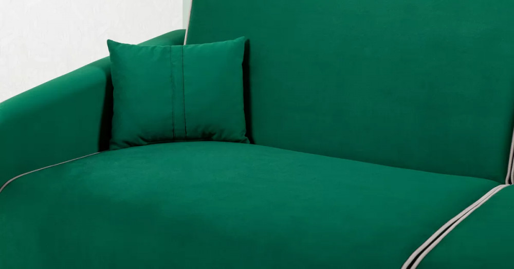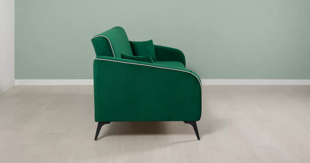 ДВПдекоративные подушки, шт: -2наполнитель подушек: -крошка ППУ и полиэфирное волокно «шарики»материал опор: металлцвет опор: черныйвысота опор (мм): 165ДекорСпинка и сиденье разделяются пополам двойным кантом по центру и одинарным по краям сидения, для придания одной единой формы. Подлокотники с изгибом на лицевой стороне и мягкими закругленным углом со складками, с выраженным контрастным ровным кантом по внешнему контуру изделия и изогнутой линией канта.Назначениев гостиную