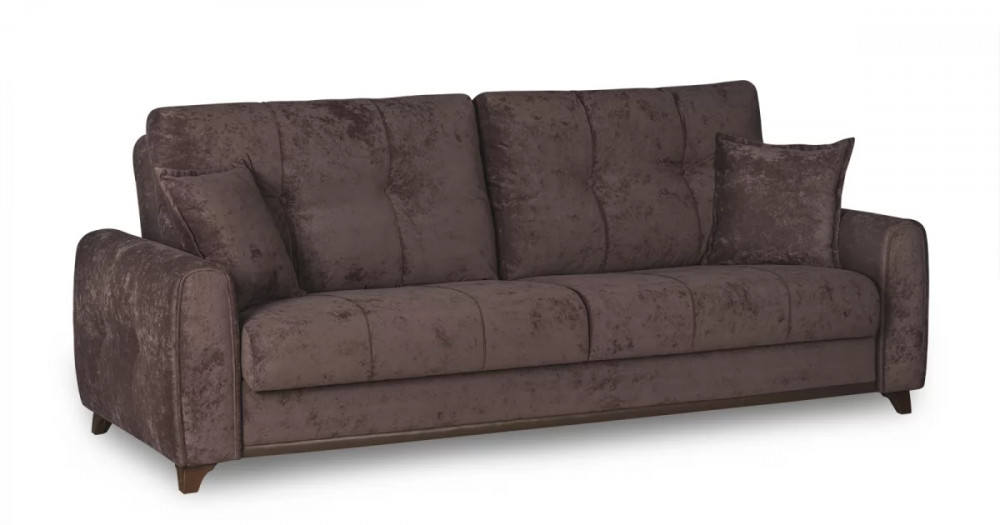 Материалыосновная ткань: Романс (велюр) / Марвел (кож.зам)выполняется в тканях: Романс ява (тёмно-фиолетовый), Марвел шоколад (шоколадный)каркас: фанера деревянный брус ДСП ЛДСП ДВПооснование матраса: ППУ на блоке плоских пружин "змейка"приспинные подушки, шт: 2съемные чехлы приспинных подушек: естьдекоративные подушки, шт: 2наполнитель подушек: крошка поролона и полиэфирное волокноматериал опор: пластикцвет опор: коричневыйвысота опор (мм): 80Бельевой ящикестьс перегородкой по центру (2 отделения)размер отделения (Д x Ш, мм): 890 x 840 x 200Требуется ли сборкадаУпаковкаколичество коробок, шт: 2общий вес с упаковкой, кг: 82,4Гарантия: 18 месяцевГабаритысложенный (Д x Г х В, мм): 2340 x 1050 x 910разложенный (Д x Г х В, мм): 2340 x 1310 x 600спальное место (Д x Ш, мм): 1950 x 1310высота посадки (мм): 470глубина сиденья (мм): 500высота спинки (мм): 540высота подлокотника от сиденья (мм): 180максимально допустимая нагрузка: 80 кг на одно посадочное место, 100 кг на одно спальное местоМеханизм трансформацииКнижка с 0 стенойБельевой ящикестьс перегородкой по центру (2 отделения)размер отделения (Д x Ш, мм): 890 x 840 x 200Декорзащипы на подушках и подлокотниках с утяжкой на 2 пуговицы из осн. материала, защипы на сидушке, декоративный кант на передних торцах подлокотников