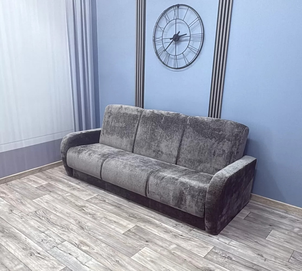 Это лучший вариант соотношения «цена-качество». Спальное место дивана основано на пружинных блоках, соединенных между собой механизмом раскладки «Книжка». Имеется вместительный короб для бельевых принадлежностей. Съемные подлокотники упрощают процесс транспортировки.