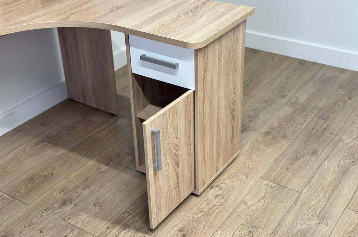 Угловой компьютерный стол «Лайт» поможет организовать рабочее пространство в комнате школьника или подростка, он удобно устанавливается в угол комнаты и не загромождает пространство, несмотря на свои габариты. У компьютерного углового стола «Лайт» в {{in_city}} большая рабочая поверхность: на нем можно легко расположит даже большой монитор, предусмотрено место для клавиатуры, системный блок удобно размещается снизу. Также в модели имеется тумба и выдвижной ящик, где удобно хранить учебные и канцелярские принадлежности, книги. Стол может компоноваться другой мебелью из линейки «Лайт».