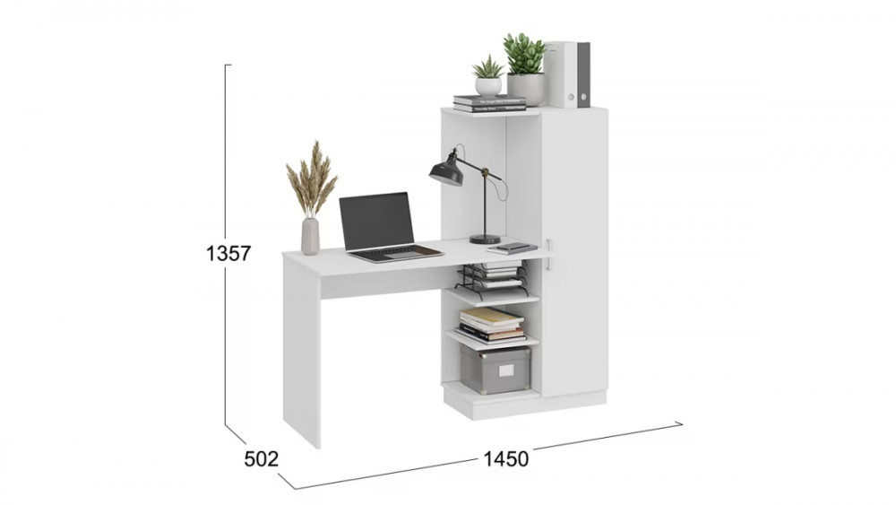 Назначение: Мебель для работы и приема пищи Количество дверей: 1 Гарантийный срок: 18 месяцев Комната использования: Молодежная Материал кромки каркаса: ПВХ Стиль: Современный Тип: Компьютерный стол Расположение: Напольный Материал каркаса: ЛДСП Направление открытия двери: Определяется при сборке Материал ручек: Пластик Производство: Россия Габаритная ширина: 1 450 Габаритная высота: 1 357 Форма предмета: Прямоугольный Габаритная глубина: 502 Модель: Бейсик Срок службы: 5 лет Материал фасада: ЛДСП Оттенок: Белый Цвет: Белый Цвет каркаса: Белый Цвет фасада: Белый Оттенок каркаса: Белый Оттенок фасада: Белый Тип сборки: Универсальный левый/правый Заглушина для ящика кровати в комплекте: Нет Наличие механизма раскладки: Нет Наличие спального места: Нет