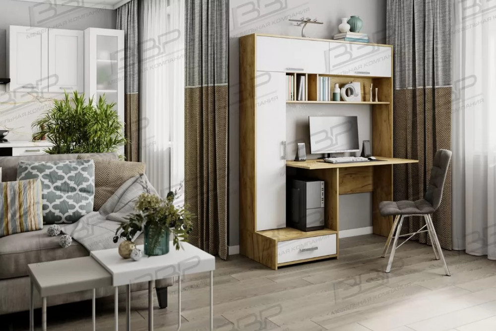 Компьютерный стол «Мист-1» отличается своей функциональностью в сочетании со стильными цветовыми решениями. В его конструкции предусмотрены следующие элементы: отсек для системного блока, встроенный пенал, система вместительных открытых и закрытых полок.