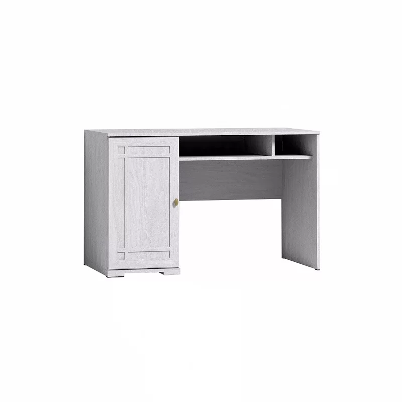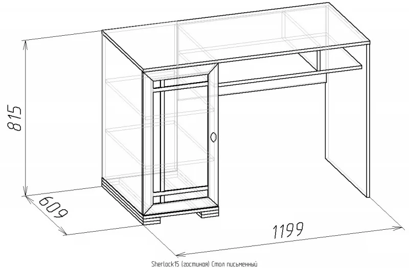 Классический письменный стол можно поставить в гостиную или кабинет. Широкая столешница на 587 мм позволит удобно разместиться с ноутбуком и бумагами. После работы их можно убрать на полку под столешницей. В боковой тумбе две полки, регулируемые по высоте. Их можно не устанавливать и в свободную нишу поставить компьютерный процессор. Высота стола - 765 мм - обеспечит комфортную работу человеку высокого роста.