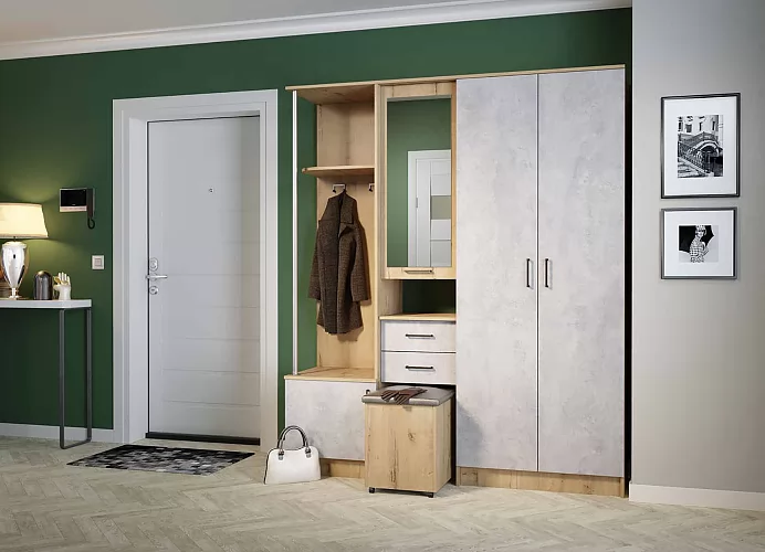 Прихожая "Дуся 1.7" УНИ, (ш1700*г480*в2015мм), ЛДСП дуб бунратти/цемент G41182 в Пыть-Яхе