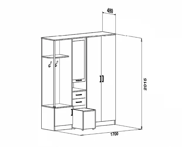*Размеры (Ш*Г*В), мм:1700*480*2015 мм
