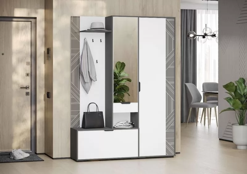Прихожая ЛЕО УНИ (ш1468*г365*в2024мм), ЛДСП Графит/Белый + ФП в Пыть-Яхе