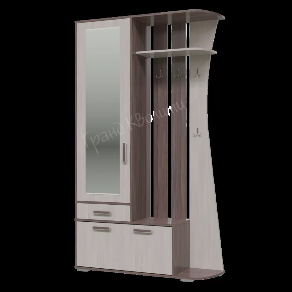 Компактная и стильная прихожая «Мокко» выполнена в трех современных сочетаниях цветов: «Бодега» тёмный/светлый, «Дуб Кельтик». Не смотря на свои компактные размеры, прихожая «Мокко» обладает хорошей функциональностью: штанга и крючки для одежды, выдвижной ящик для мелочей, обувница и две полки.