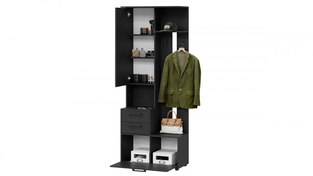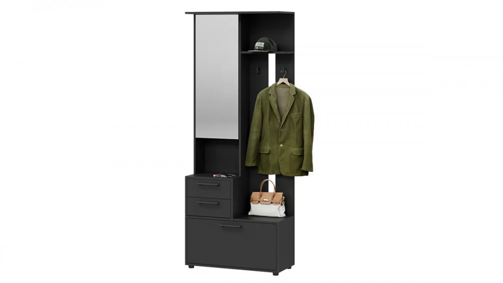Назначение: Мебель для хранения Количество дверей: 2 Зеркало: Да Гарантийный срок: 24 месяца Комната использования: Прихожая Материал кромки каркаса: ПВХ Стиль: Современный Тип: Вешалка напольная, Секция с зеркалом Расположение: Напольный Тип направляющих ящиков: Роликовые Материал ножек/опоры: Пластик Наполнение: Обувница, Полки ЛДСП, Крючки, Ящики Материал каркаса: ЛДСП Направление открытия двери: Определяется при сборке, Вниз Материал ручек: Пластик Дополнительная информация: Мягкий элемент в комплект не входит Производство: Россия Количество посадочных мест: 1 Габаритная ширина: 800 Габаритная высота: 2 041 Форма предмета: Прямоугольный Габаритная глубина: 360 Количество ящиков: 2 Количество полок ЛДСП: 1 Модель: Витра тип 1 Срок службы: 5 лет Материал фасада: ЛДСП Оттенок: Темно-серый Цвет: Антрацит Цвет каркаса: Антрацит Цвет фасада: Антрацит Оттенок каркаса: Темно-серый Оттенок фасада: Темно-серый Тип сборки: Универсальный левый/правый Наличие механизма раскладки: Нет Наличие спального места: Нет