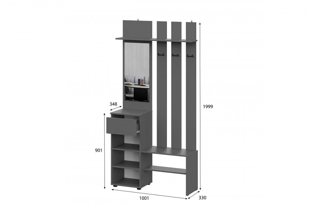*Размеры (Ш*Г*В), мм:1001*348*1999 мм