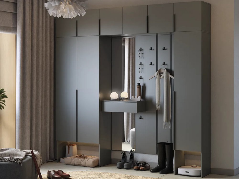 Крючки предоставляют удобное место для хранения сумок или аксессуаров. Выкатной ящик служит дополнительным пространством для хранения мелочей, таких как ключи, кошелек, косметика или другие небольшие предметы.